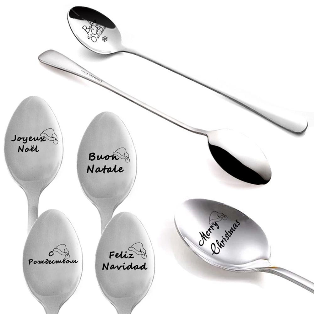 Original tea or dessert spoons with a Christmas inscription.