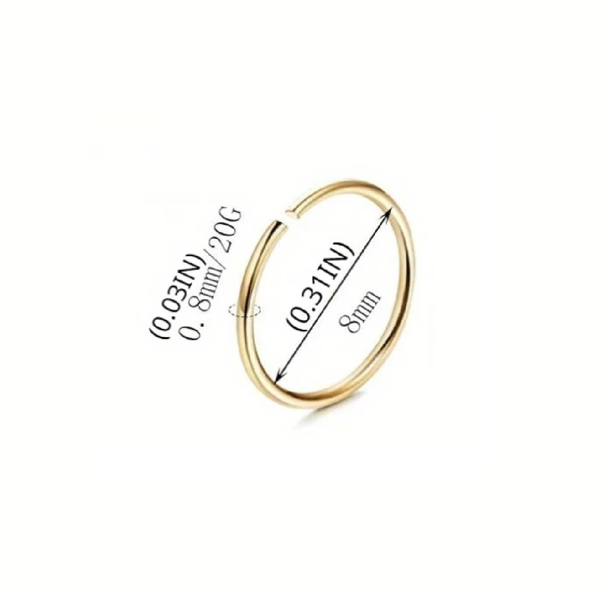 Circular Piercing 0.8 x 8 mm Gold Surgical Stainless Steel Minimalist Ring Delicate Accessory for Everyday Wear