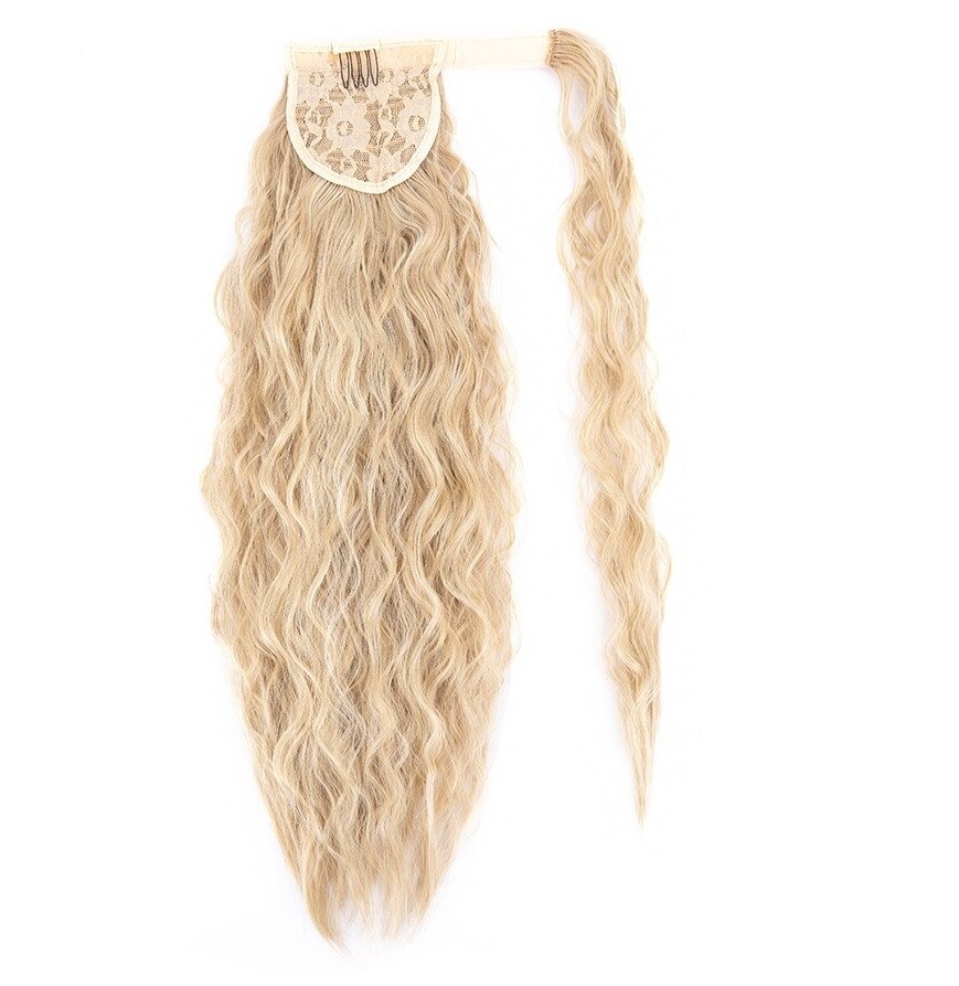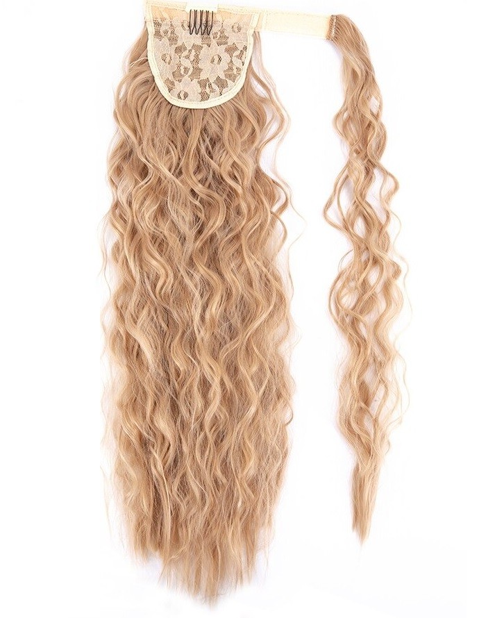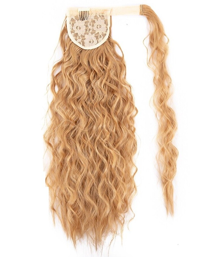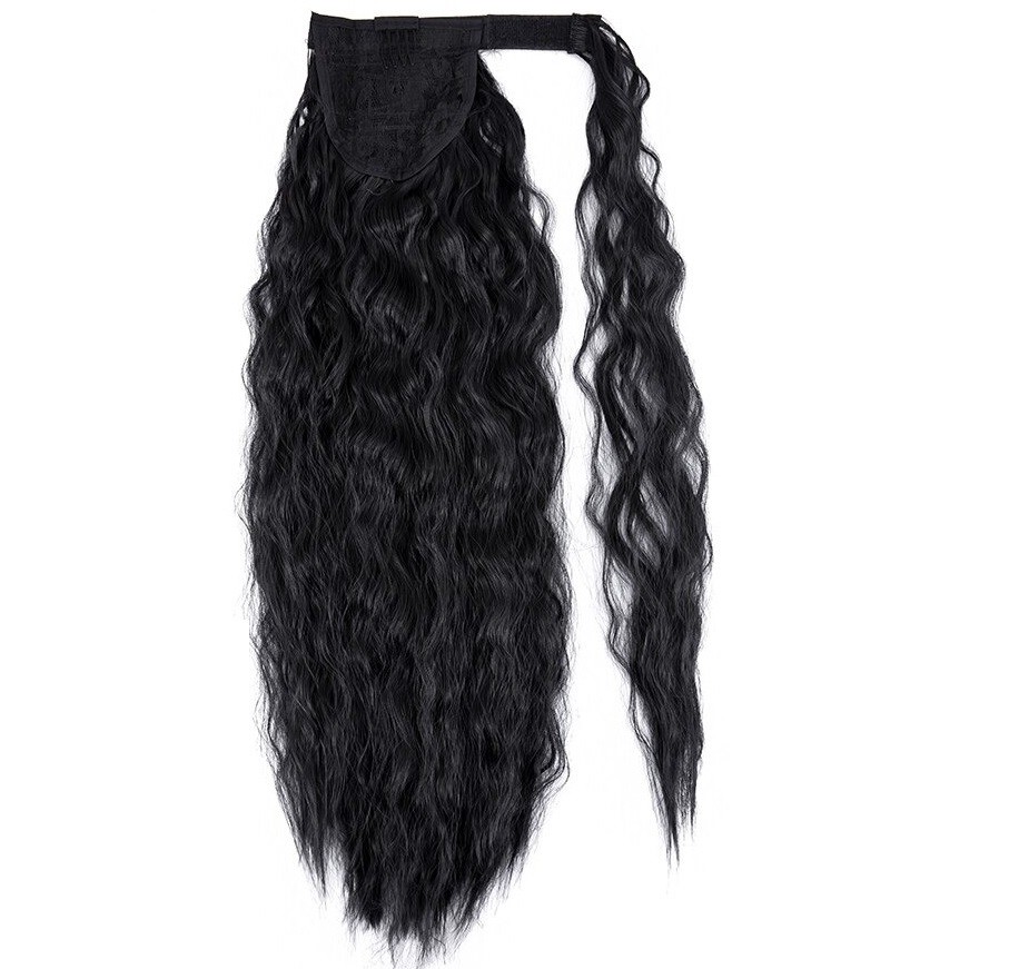 The clip-in hair extension can be easily attached to your ponytail. Secure attachment thanks to the clip and elastic band. The side strand covers the elastic band and Velcro. This ensures a completely natural appearance. Suitable for occasional or daily wear. Holds its shape. Adds volume to fine hair.