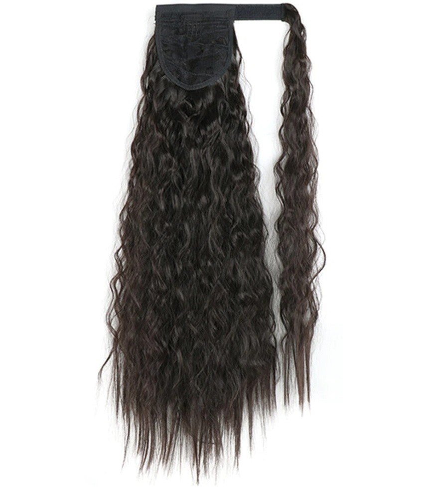 The curly hairpiece can be easily and quickly attached to your ponytail. The length of the hairpiece is approximately 56 cm. Secure attachment thanks to the clip and elastic band. It extends hair and creates volume. Suitable for fine and thinner hair. Use a side strand to cover the elastic band and Velcro. Made from high-quality synthetic fibres.