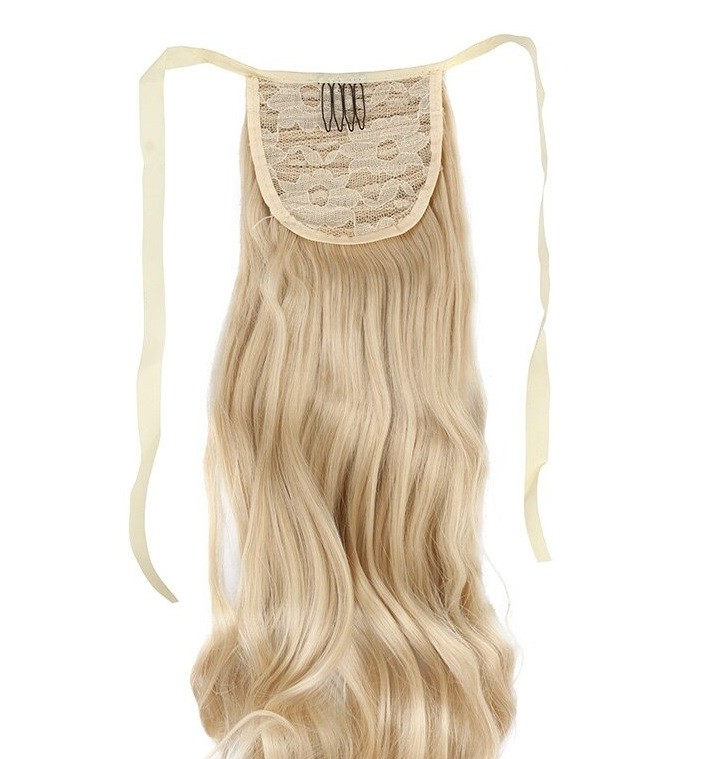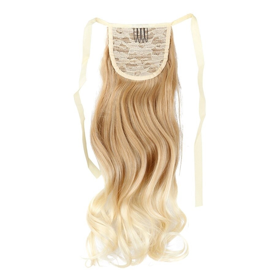 Approximately 50 cm long wavy hairpiece. Natural appearance and pleasant material. Suitable for everyday wear. The clip in hairpiece can be easily attached to your ponytail. Secure attachment thanks to the clip and elastic band. High durability. Retains shape. Adds volume to fine hair.