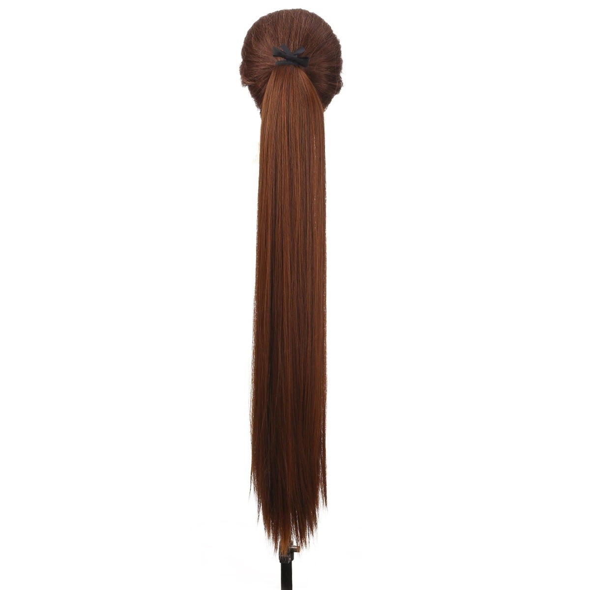 The clip-in hairpiece is easily attached to your ponytail. It adds volume to your hair. High-quality synthetic fibres were used in its production. The hairpiece is frizz-resistant. Secure and quick attachment using a clip and elastic band.