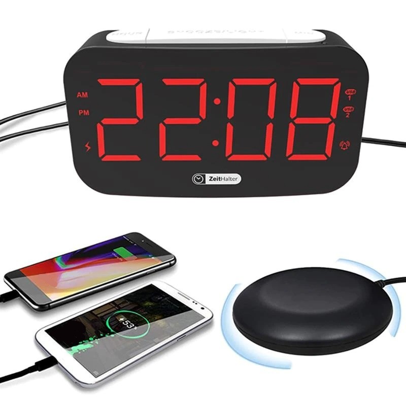 Features: 2x USB, vibrating alarm, night light