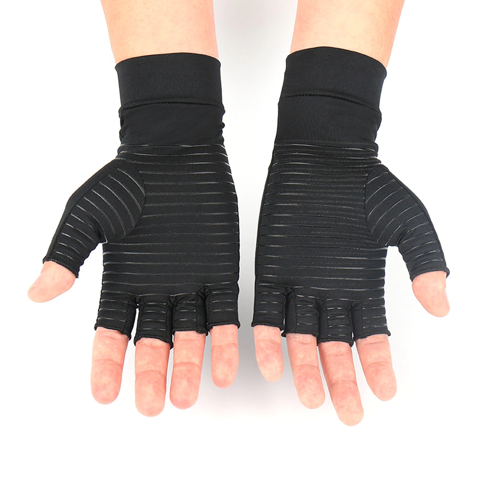Relieves pain. Breathable material. Open finger design. Full description