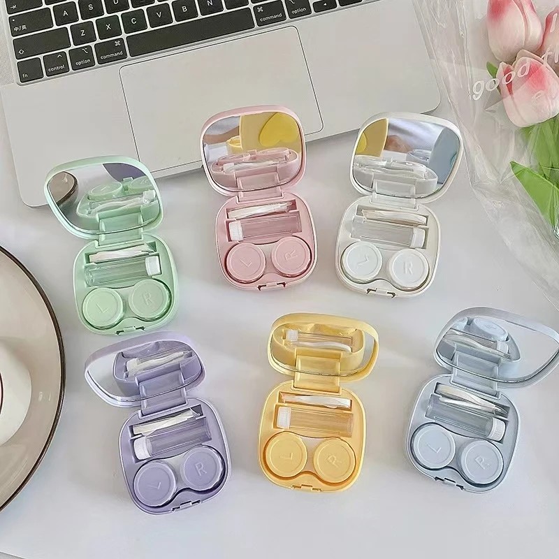 Contact Lens Case with Mirror and Accessories Size 7 x 7 x 2.4 cm Plastic Coloured Case with Heart for Travel