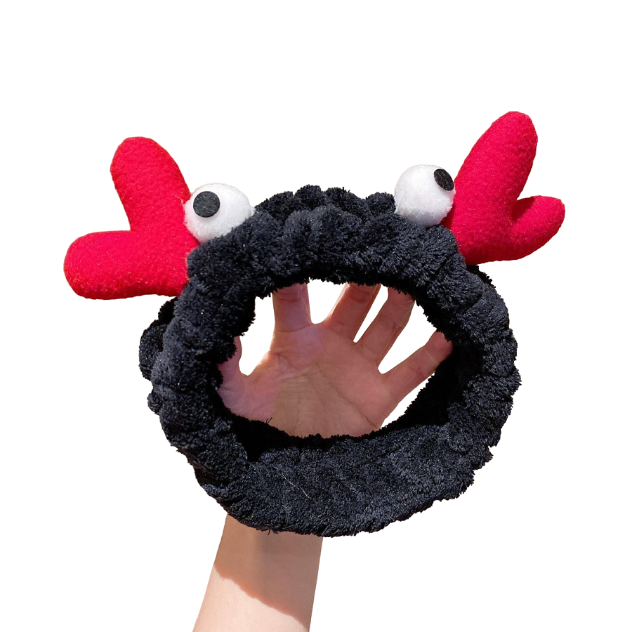 This funny headband is soft and gentle on your head. The headband features attached eyes and horns for a unique look. The headband does not press or pull on the hair. The cosmetic headband is perfect for keeping hair away from your face while you apply makeup or perform other tasks.