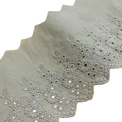 Cotton fabric with lace trim is an elegant textile material suitable for sewing, embellishing, and various creative projects. The combination of soft cotton fabric and decorative lace edge creates a stylish and romantic appearance. This type of fabric is ideal for making garments, decorative textiles, or various fashion accessories. Thanks to its versatile design, it is suitable for a wide range of creative projects.