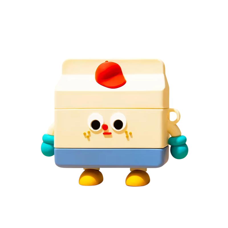 Creative 3D Case for AirPods 4 Cartoon Milk Box Scratch, Dust, Impact and Unintentional Opening Protection