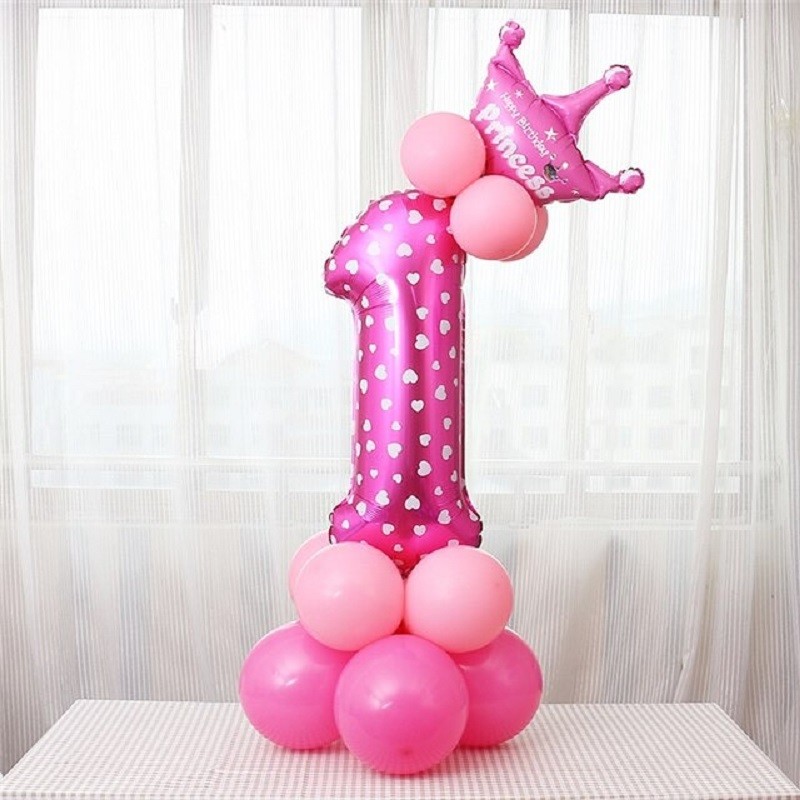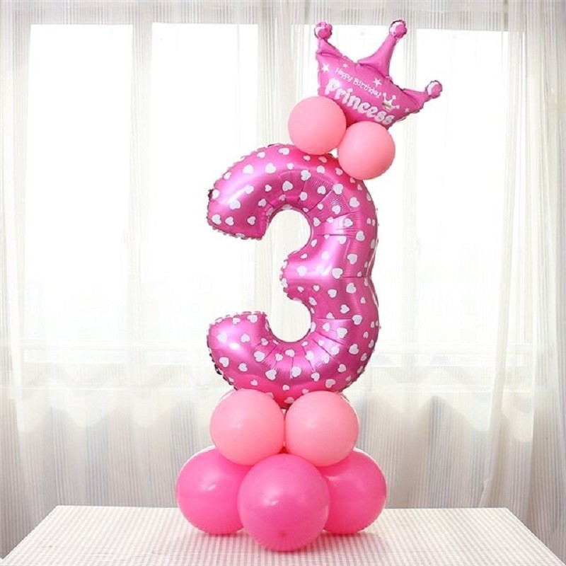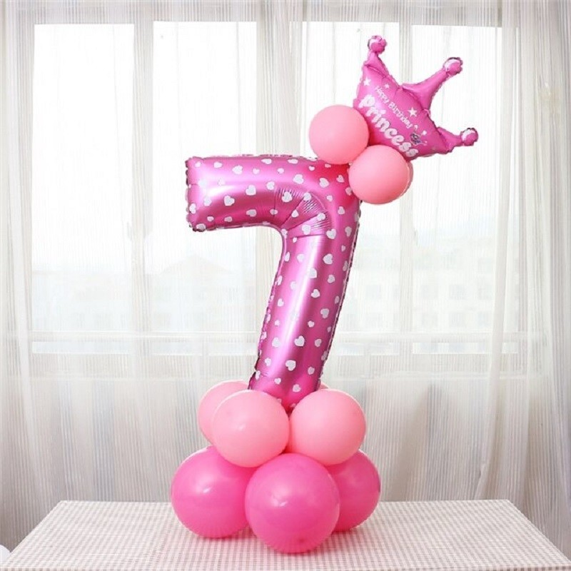 The balloon number can be attached to several small balloons, and a crown can be placed on top.