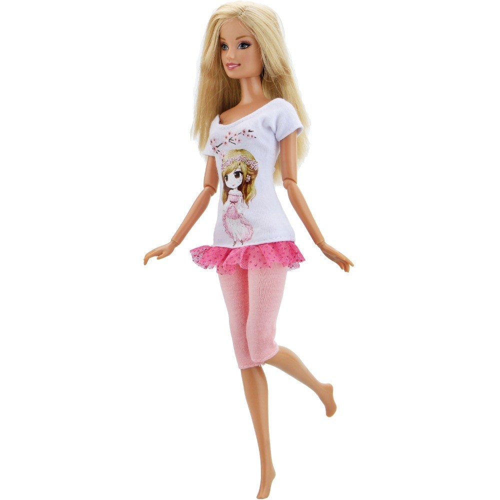 Three-quarter trousers with a skirt and a white T-shirt with print.