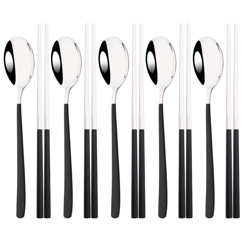 The stylish Korean cutlery set 10 pcs is the perfect choice for lovers of Asian cuisine and modern dining. The set includes spoons and chopsticks, which are typical for Korean dining style and allow for comfortable consumption of various types of dishes. The elegant combination of design and functionality will give your table a modern look.