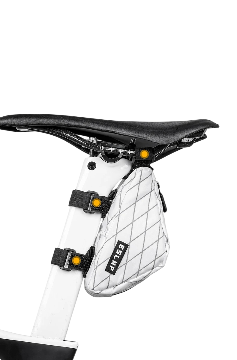 Compact underseat bag made of nylon and polyester for secure storage of tools, keys, and small items while riding. Full description