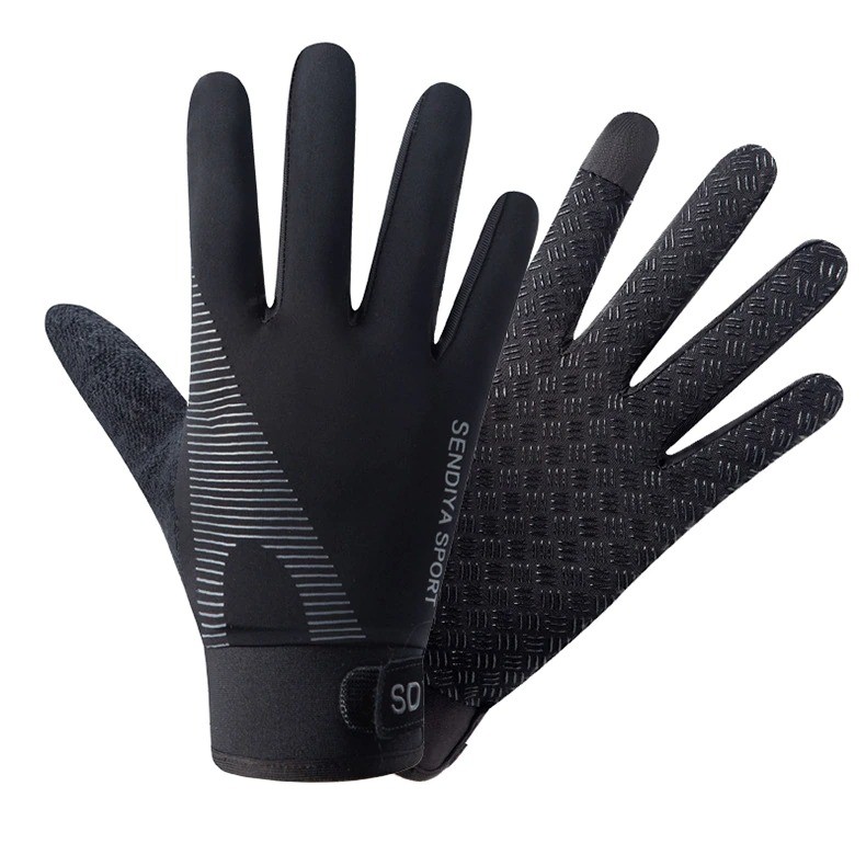 All-season cycling gloves. Long-fingered gloves provide excellent protection against abrasions during falls. They wick moisture from the palms, thereby improving grip. Easy and secure fastening with Velcro. A great choice for horse riding, skiing, and fishing as well.