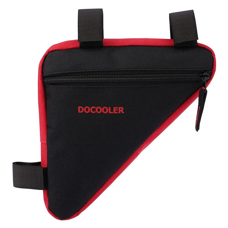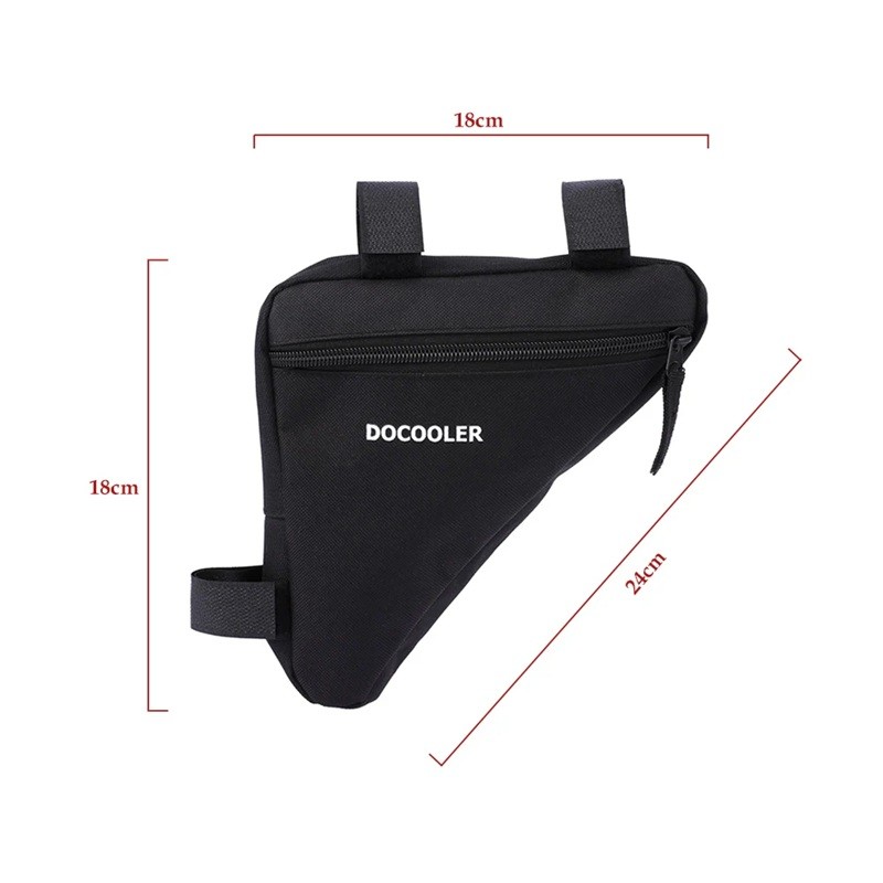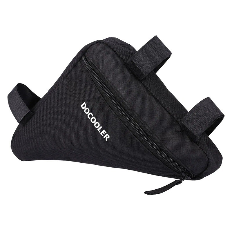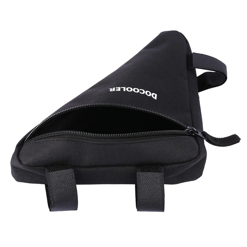 Practical triangular frame cycling bag with Velcro attachment, ideal for tools, keys, or small items on the go. Full description