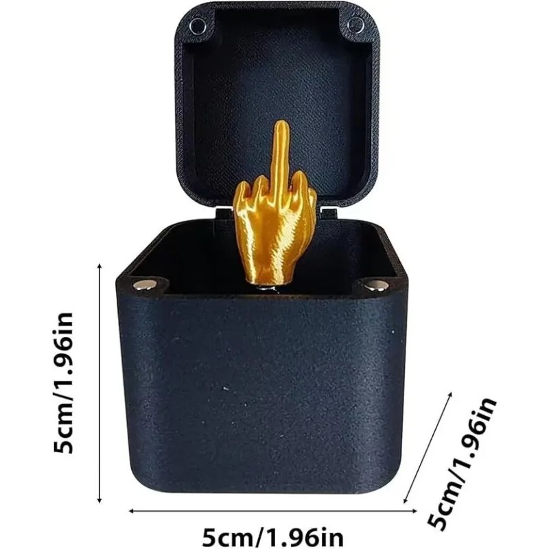 Decorative Joke Box with Pop-Up Gesture 5 x 5 x 5 cm Funny Surprising Decoration The decorative joke box is an original accessory designed for amusement and exaggeration. At first glance, it appears inconspicuous, but upon opening, it offers a surprising effect in the form of a pop-up gesture. Thanks to its compact dimensions, it is suitable for a table, shelf, or as part of a humorous decoration. The box is intended primarily for joke and decorative use. Ideal as a whimsical gift or accessory for humour enthusiasts.