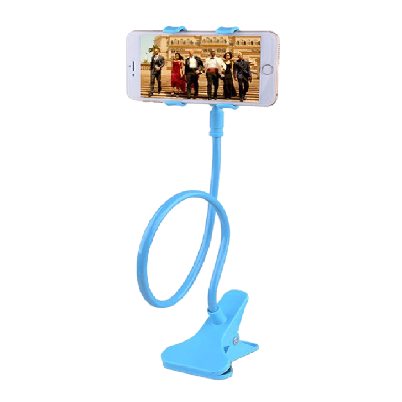 A mobile holder that easily clips to a table or shelf. It is flexible and bendable. Conveniently used for example when taking photos. It is made of stainless steel.