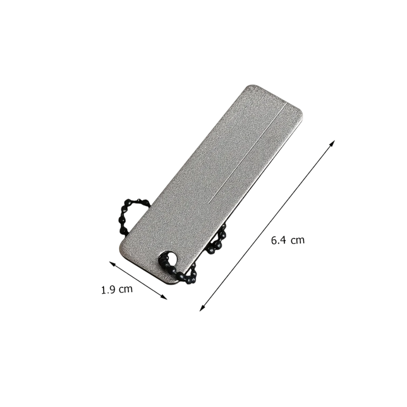 This compact diamond sharpener for knives is the perfect tool for anyone needing to keep their blades sharp while on the go. Thanks to its small size and practical design with a keyring loop, you can easily attach it to your backpack, belt, or keyring. It is made from durable steel with a diamond surface that ensures effective sharpening even on harder materials. It is great for outdoor activities, camping, hiking, and everyday household use.