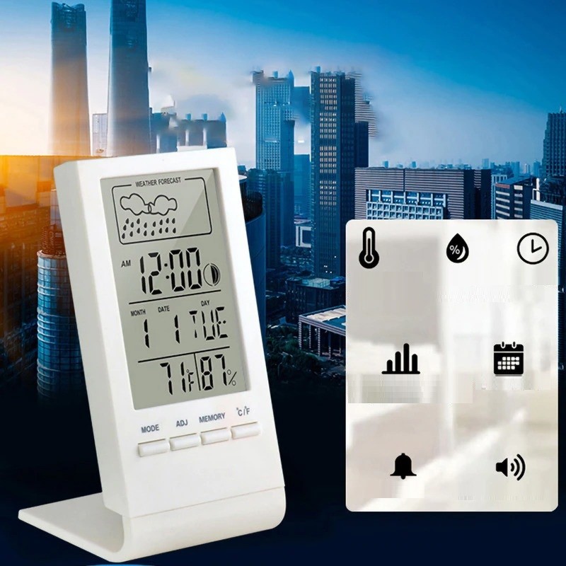 Functions: thermometer, hygrometer, date, weather forecast, alarm clock