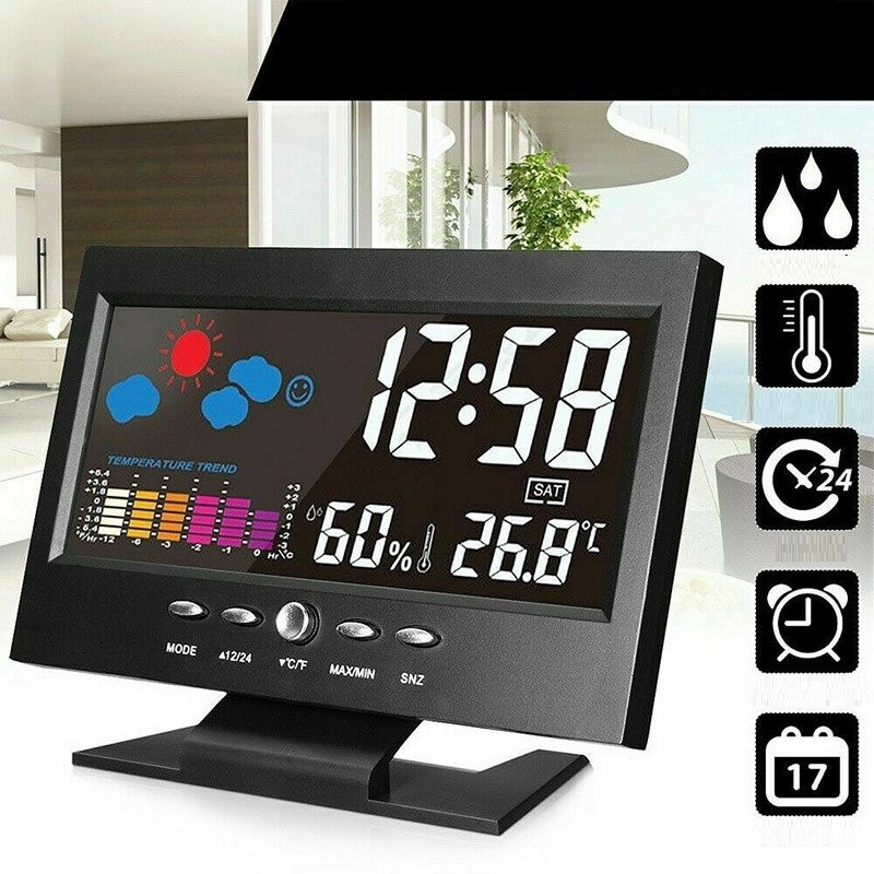 Features: calendar, thermometer, hygrometer, weather, alarm clock