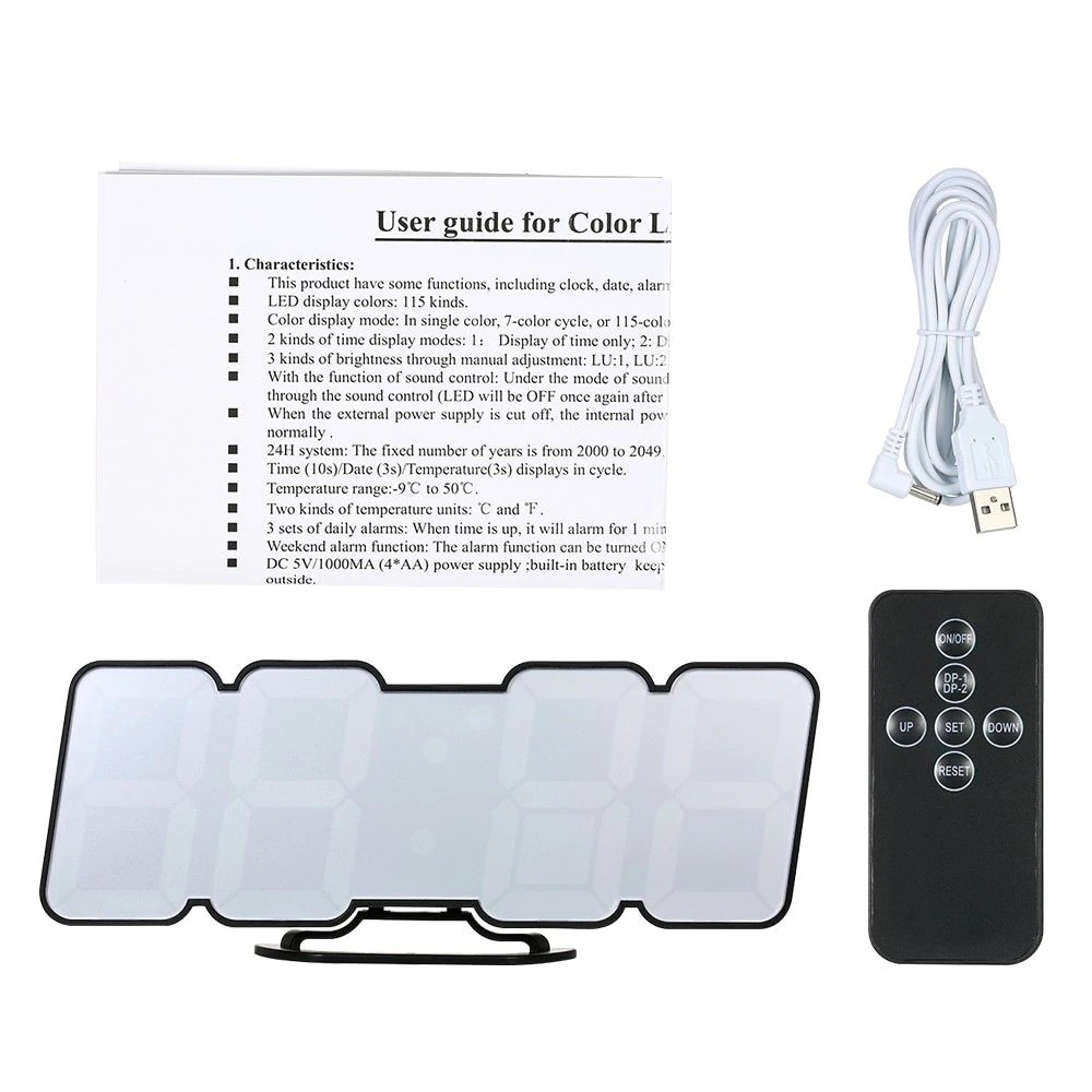 Function: RGB LED display, date, thermometer, hygrometer, adjustable brightness, alarm