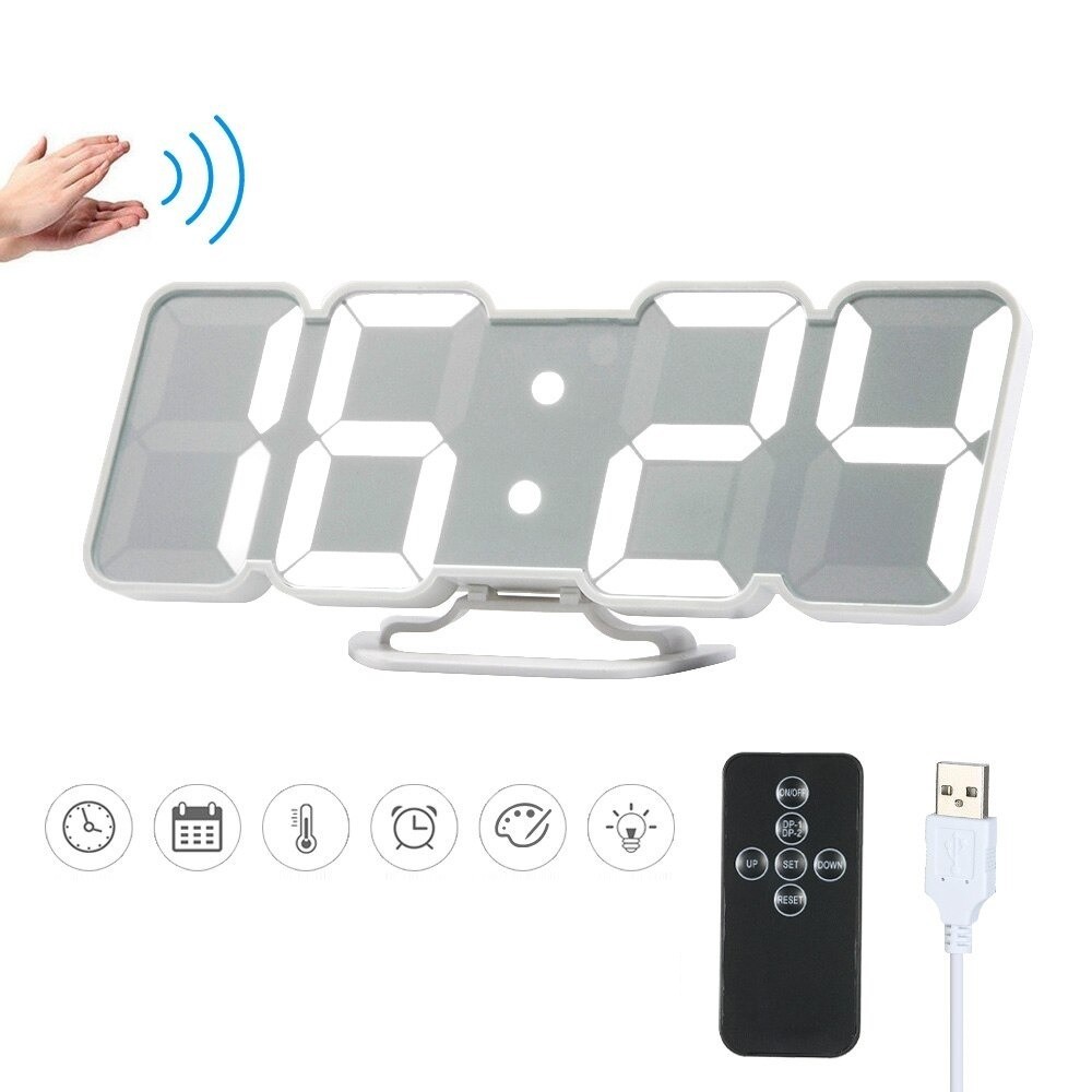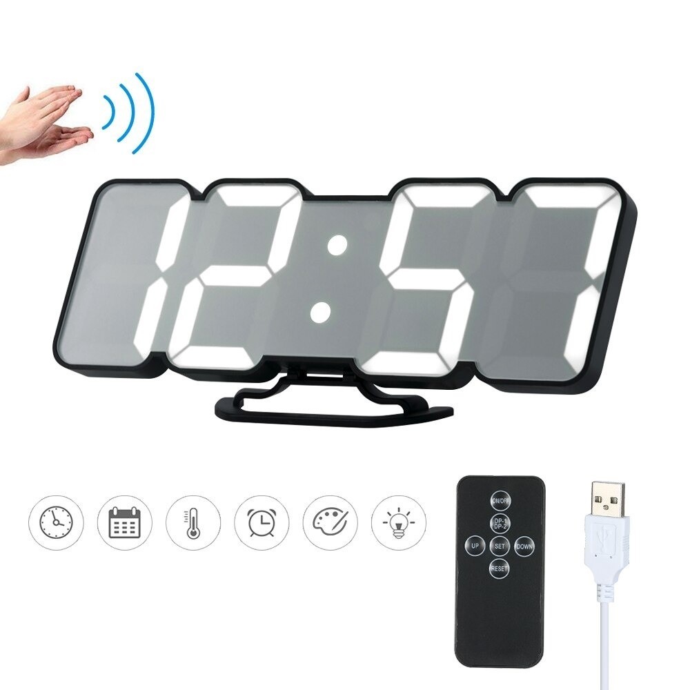 Package Contents: 1x clock, 1x USB cable, 1x remote control, 1x CR2032 button battery