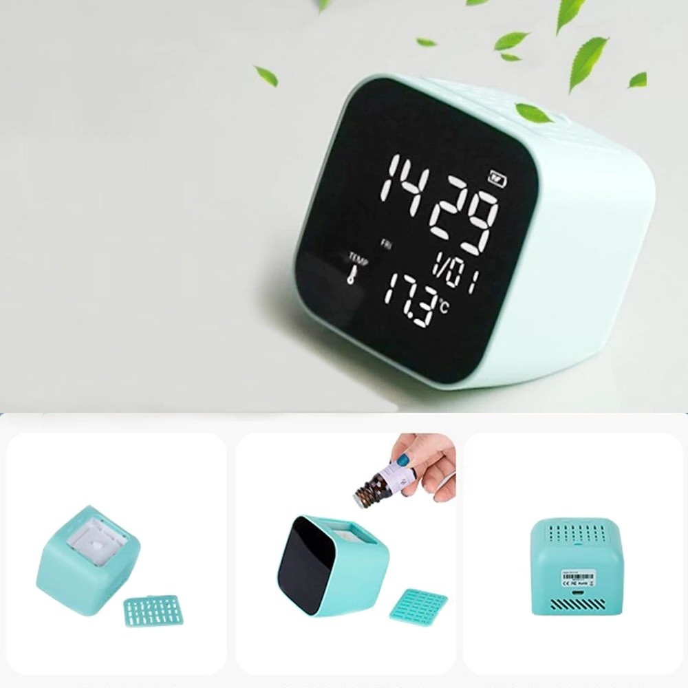 Functions: aroma diffuser, alarm clock, thermometer, date