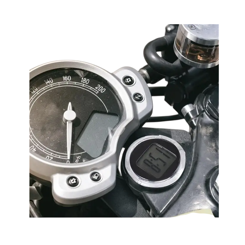 The modern and discreet design of the clock complements any type of motorcycle while still offering maximum functionality. Thanks to the adhesive backing, installation is very quick and secure, without drilling or screwing. The durable body of the clock protects the display from dust, water, and shocks, making it ideal for everyday use. The display is easily readable even in poor lighting conditions and reliably shows the time at any moment during the ride. If you are looking for a simple yet powerful time accessory for your motorcycle, these digital mini clocks will not disappoint.
