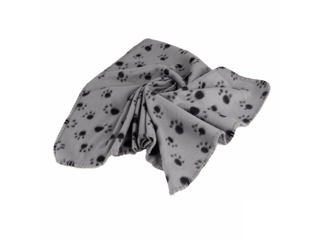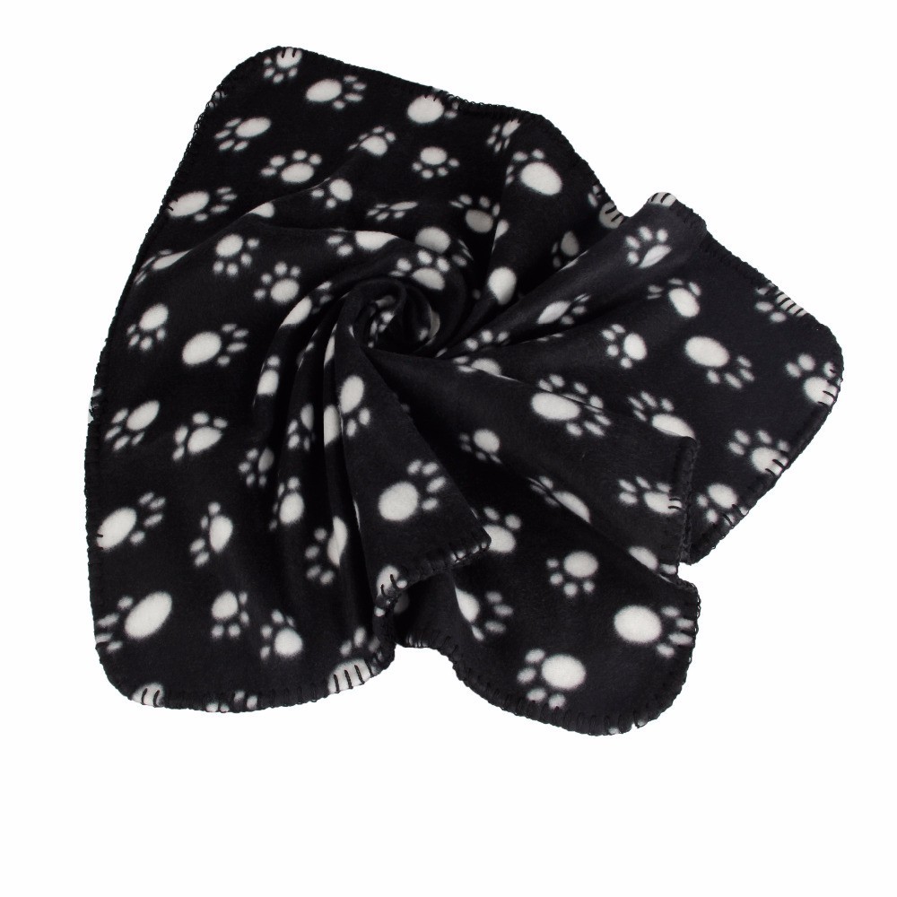 The blanket features a paw print design.