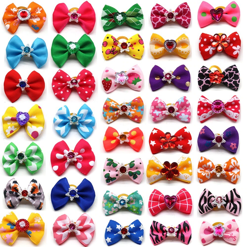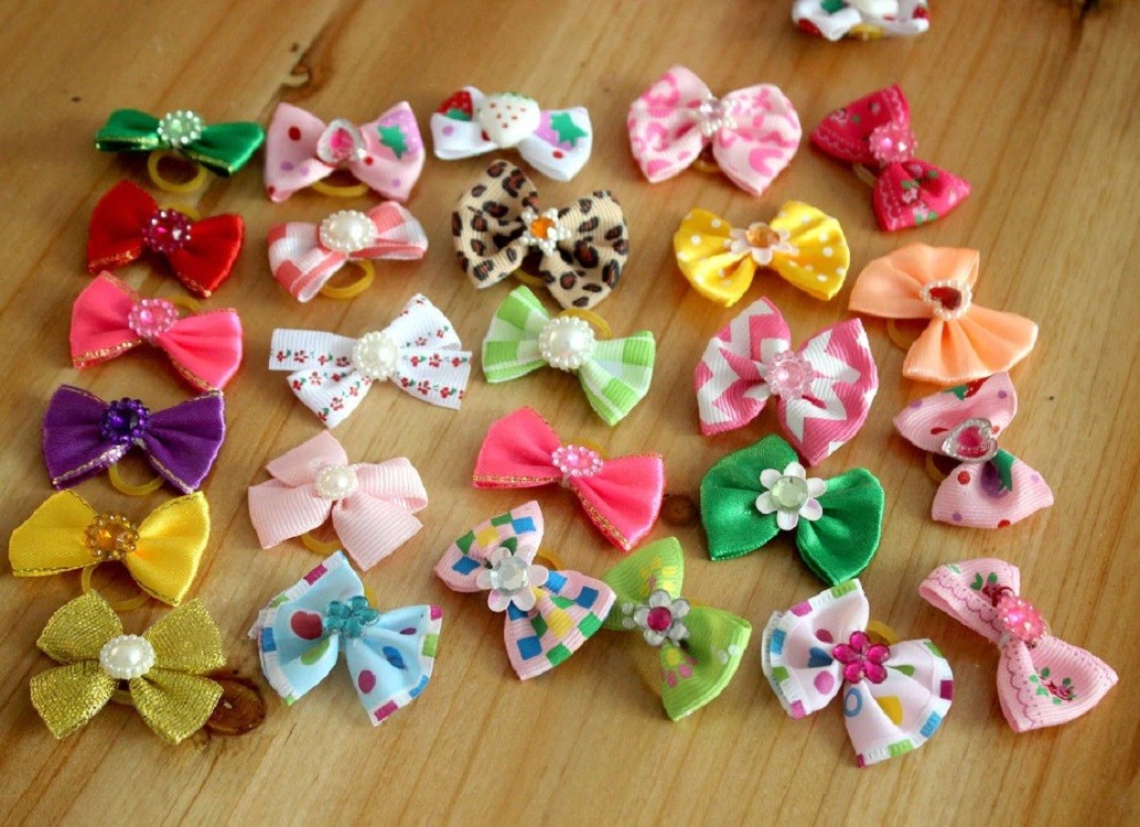 Dog Hair Ties with Bow 100 pcs