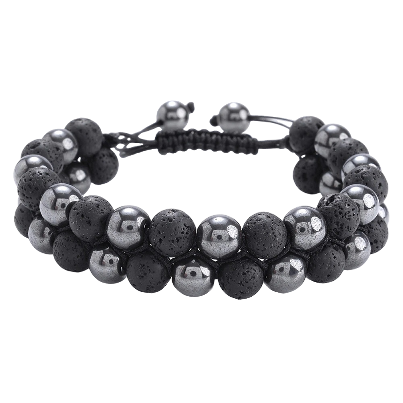 The double beaded bracelet is a fantastic accessory for everyday wear. The bracelet is woven and stylish, thus attracting attention. It is made from high-quality materials and is adjustable to fit any wrist size.