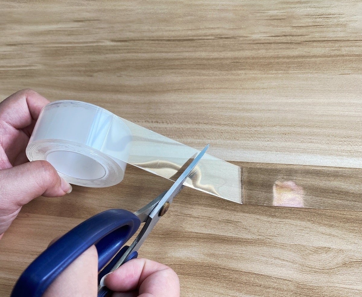 Double-sided transparent adhesive tape. Applicable to any surface - wall, glass, wood etc. An ideal helper, if you want to easily and quickly attach something without drilling. The adhesive tape is also waterproof and can be reused. The tape is 20 mm wide.