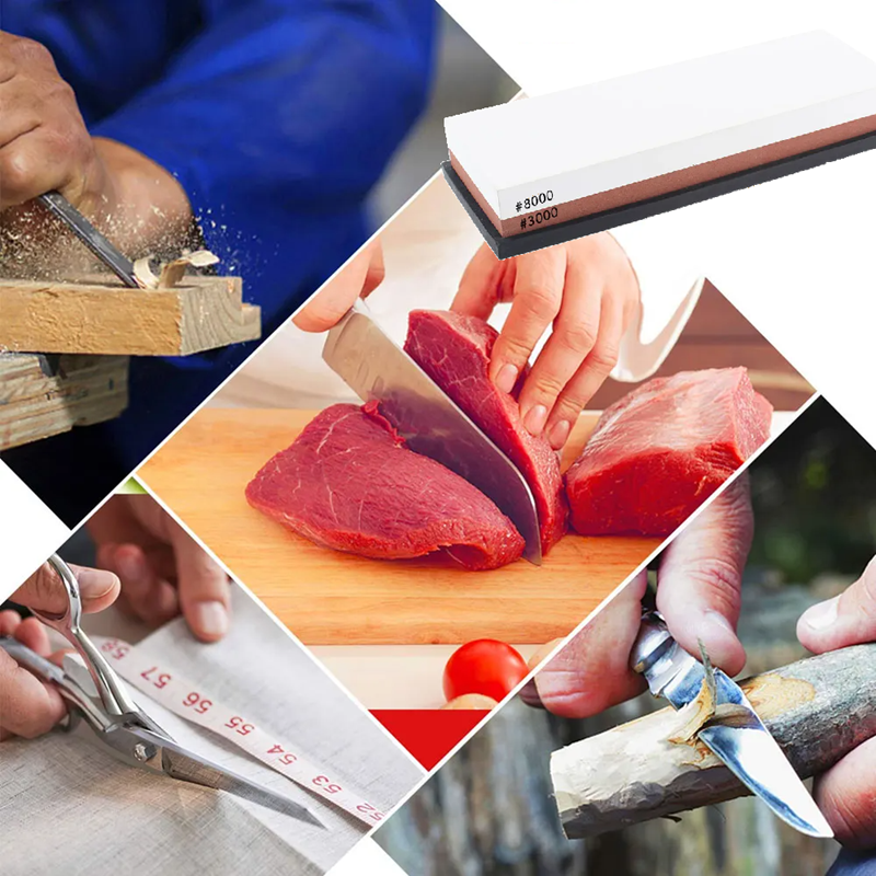 Home page Home page Home & Household Supplies Kitchen Cooking Kitchen Knives & Scissors Knife Sharpeners & Steels Double-Sided Knife Sharpener 3000/8000 Grit from White Corundum with Non-Slip Base Sharpening Stone for Knives Tools and Woodcarving