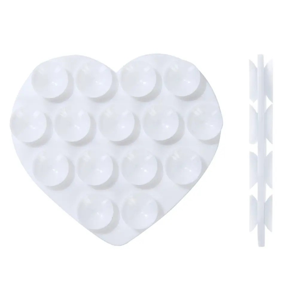 Double-Sided Silicone Heart-Shaped Suction Cup 7 x 6.5 cm Self-Adhesive Phone Holder for Car Office and Home Decorative Holder