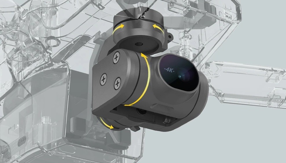 Package contents: 1x drone, 1x controller, 1x battery, 4x propellers, 1x charging USB cable, 4x USB cable, 1x gimbal case