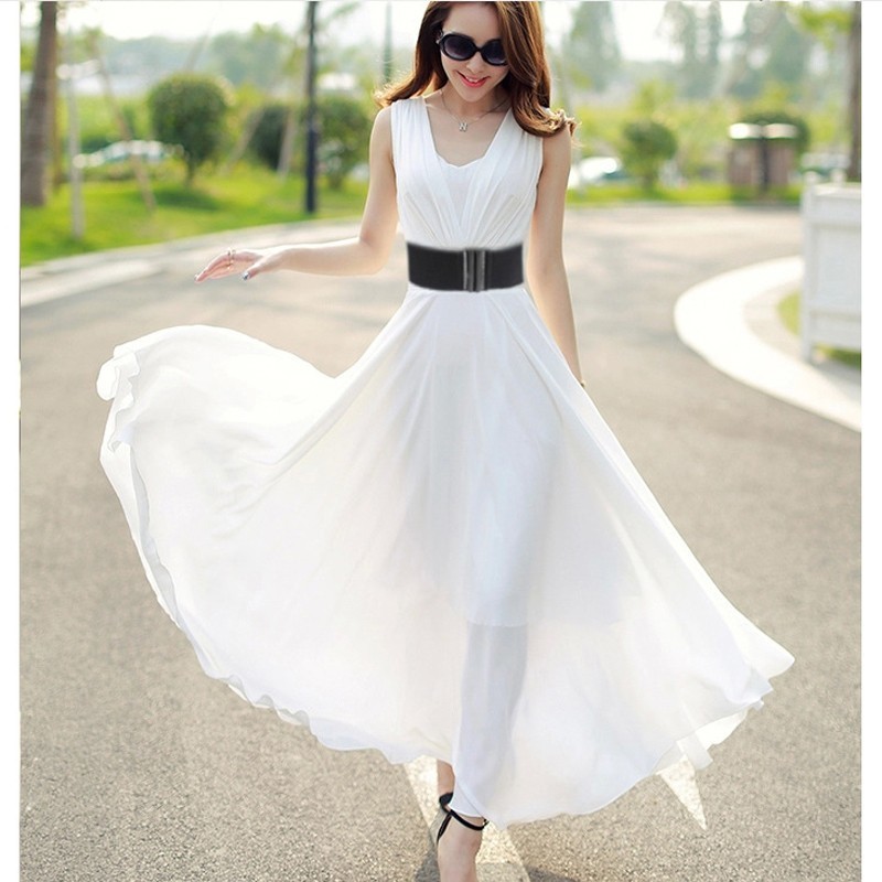 Elastic belt with buckle suitable for dresses, shorts, and loose t-shirts.