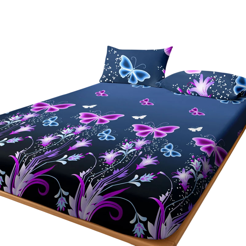 The fitted sheet with a floral and butterfly print is soft, pleasant to the touch, and elastic. It perfectly hugs the mattress and ensures a comfortable sleep without slipping. Full description