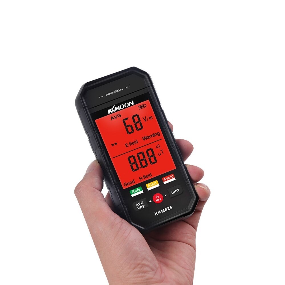 This electromagnetic field meter is used for testing electromagnetic radiation both indoors and outdoors. Built-in sensors ensure high measurement accuracy. Values are displayed on a readable LCD screen. The detector can simultaneously measure the radiation values of electric (V/m) and magnetic fields (mG/µT). The device is equipped with an indicator and alarm that activates when safe values are exceeded. The electromagnetic field meter is also ideal for testing televisions, computers, printers, refrigerators, microwaves, etc.