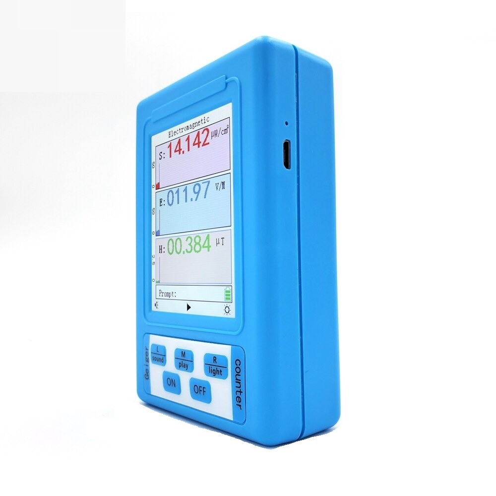 An easy-to-use and readable electromagnetic radiation meter. Made from high-quality ABS. It can measure values of the magnetic field (µT) and electric field (V/m). High sensitivity and measurement accuracy. The electromagnetic radiation meter also features an alarm function and is equipped with a backlit readable display.