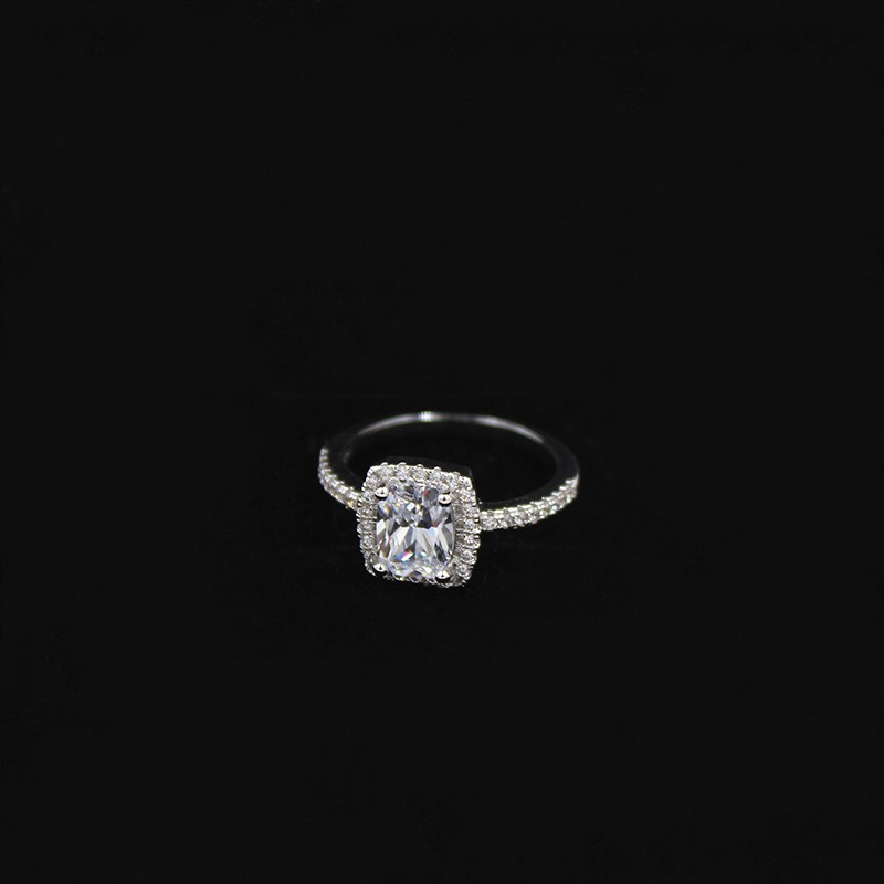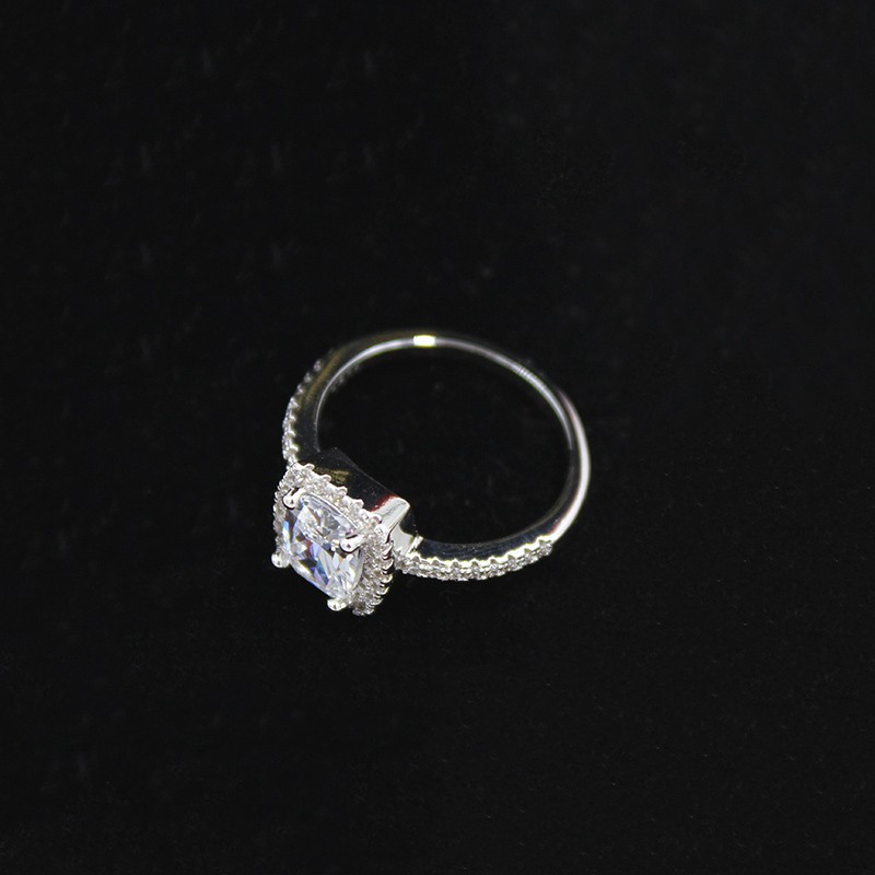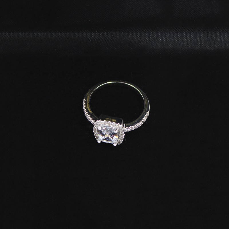 We have an elegant ring adorned with diamonds.