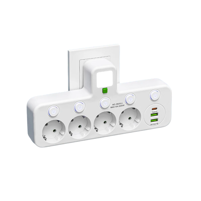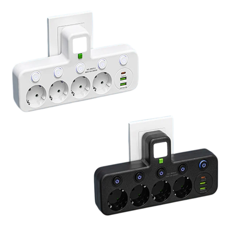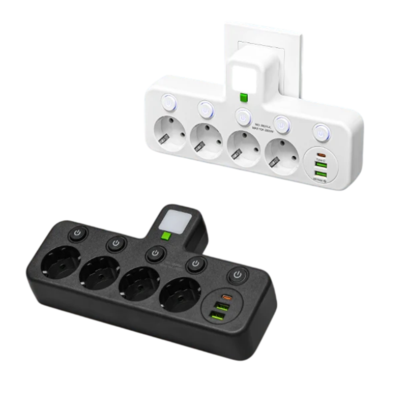 This adapter is the perfect solution for anyone needing a reliable and safe connection for multiple devices. The combination of traditional sockets and modern USB ports ensures universal use without the need for additional adapters. The night light and control switch enhance safety, especially when used in a bedroom or children's room. Its compact dimensions and absence of an extension cable make it an ideal choice for an organised and space-saving arrangement. Power output of 2500W and multiple ports provide ample energy for everyday needs at home and in the workplace.