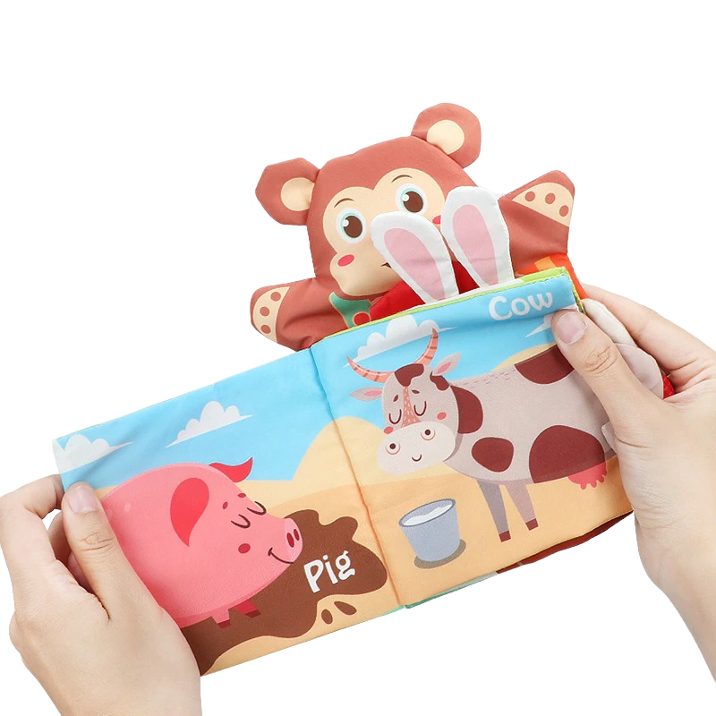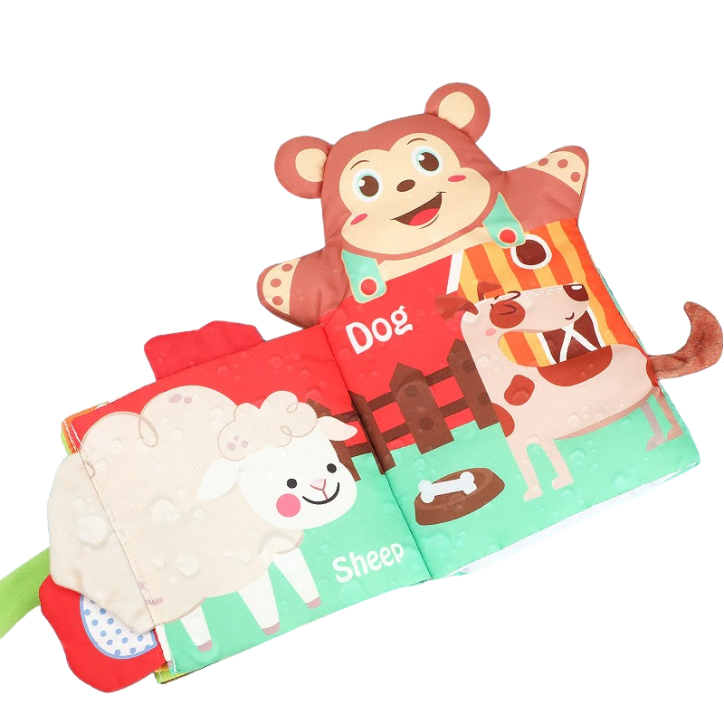 The fabric book farm is the perfect addition to any child's room or playroom. The book contains illustrated drawings of animals that are sure to bring a smile to your child's face. This book is made from soft material and in bright colours.