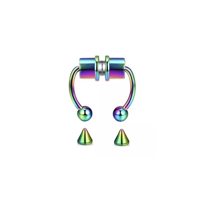 This nose piercing is made from high-quality stainless steel. It features a strong magnetic closure. The perfect solution for those who want the appearance of a pierced nose without pain and permanence. It is also in the shape of a horseshoe for comfortable and secure wear. The 10 mm diameter is the ideal size for a striking look.