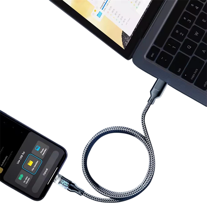 This cable is designed for users who want perfect control over fast charging and data transfer. With a length of 2 metres, you have plenty of space while working, watching movies, or playing games. The LED display shows the charging power, so you immediately know what current is flowing into your device. The woven design significantly extends the lifespan of the cable and ensures durability against everyday use. If you are looking for a combination of high performance, practical design, and smart features, this cable is the right choice.