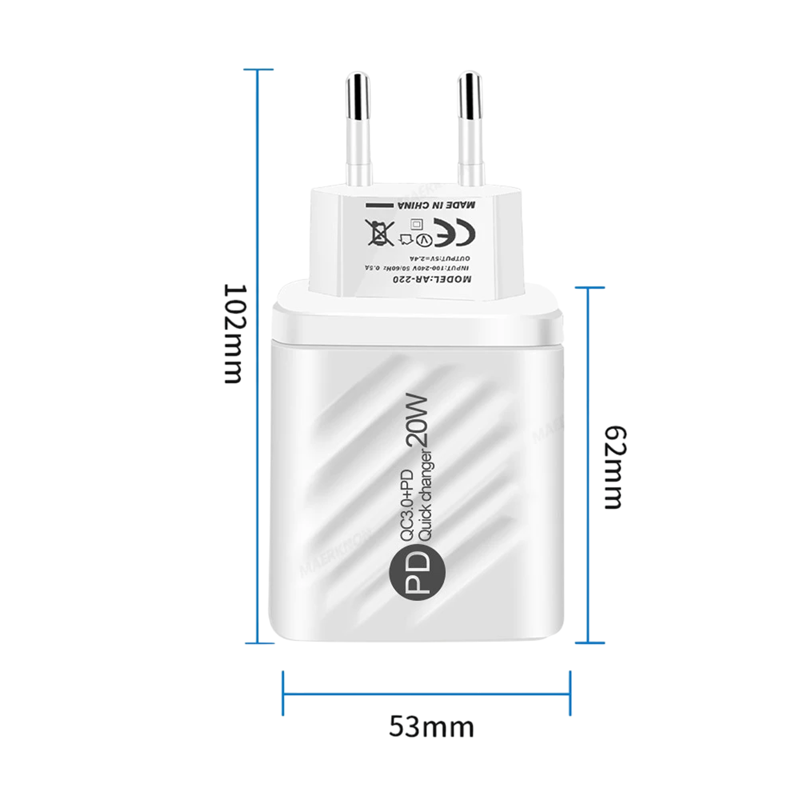 Home page Home page PC & Laptop Accessories Computer Accessories Cables, Adapters, Connectors, Sockets Cables Data Cables Micro USB Cables Fast Charging USB Charger 20W with LED Display USB C and USB A PD 5V EU Adapter Quick Charging for Phone Tablet
