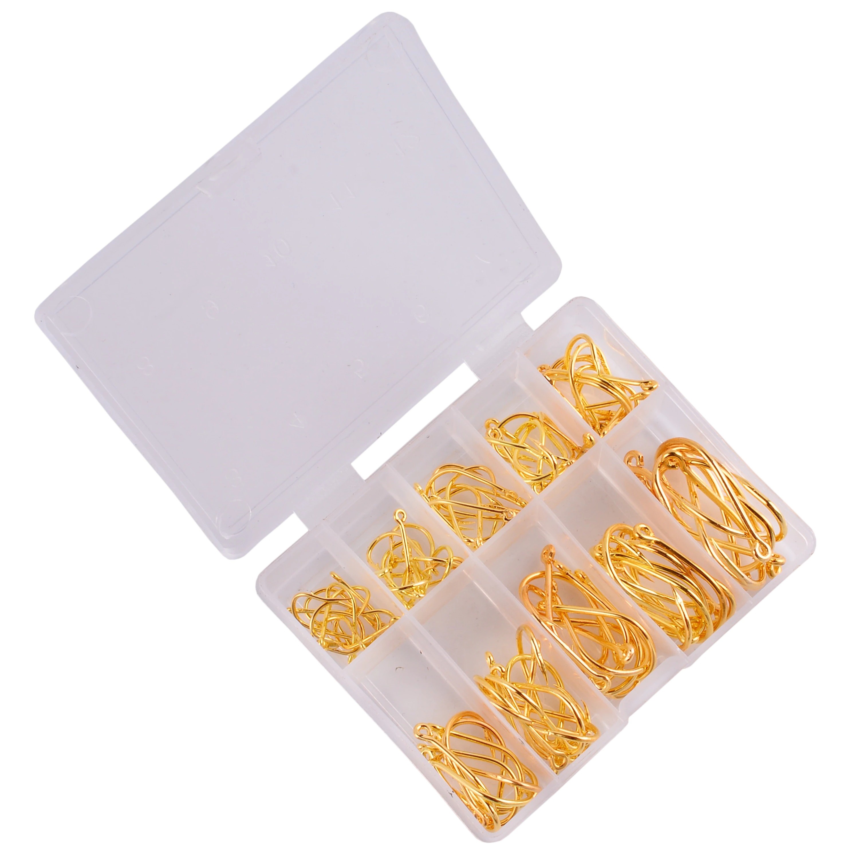 The set contains hooks in sizes 3 - 12 (10.2 - 19.5 mm). Made from high-quality material. Guarantees high durability. Fishing hooks have sharp tips with a barb.