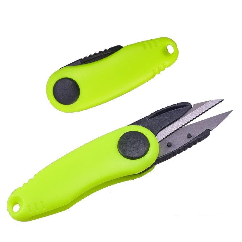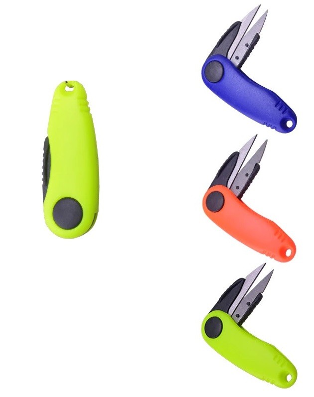 Fishing scissors, also known as line, wire and hook snips. Made from stainless steel and high-quality plastic. The colour of the scissors is sent randomly.