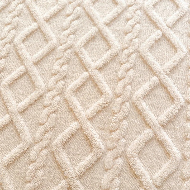 The fitted sheet made of flannel/microfibre with an embossed diamond and wave pattern is designed for everyday use. The solid colour design with texture appears clean and easily combines with various types of bedding.
