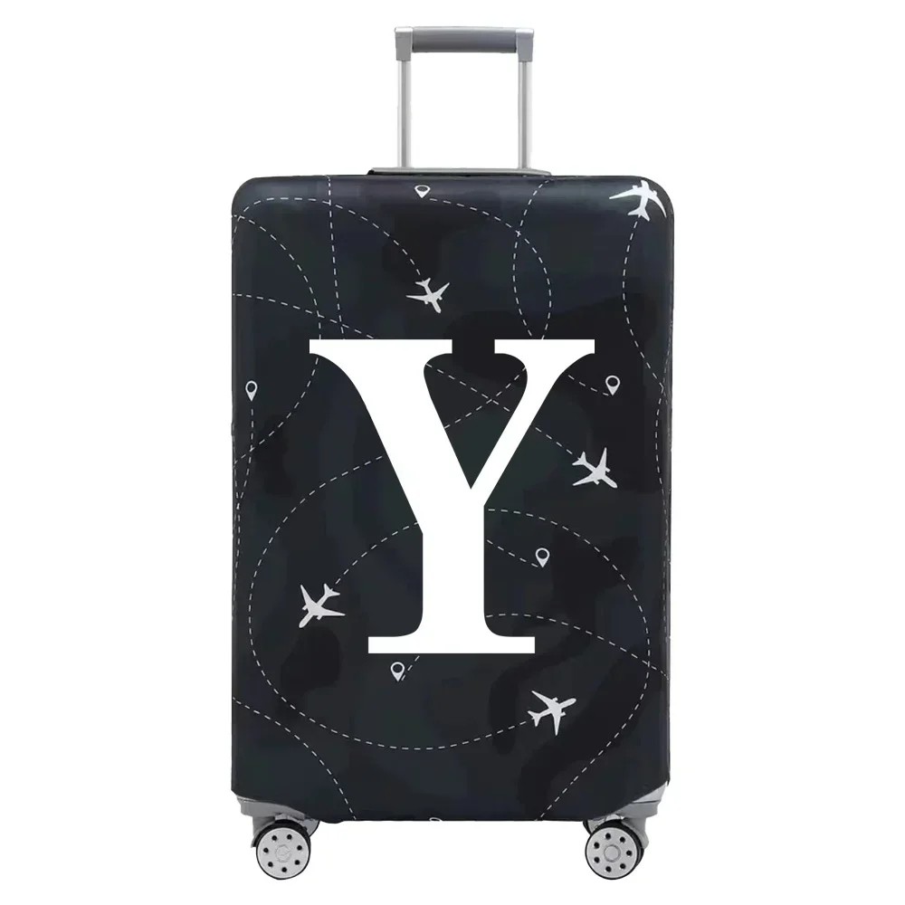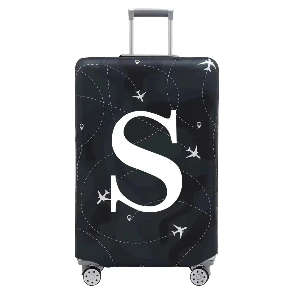 Flexible Protective Cover for Travel Suitcase with Letter Print 57–63 cm Stretch Fabric Black Elastic Luggage Cover