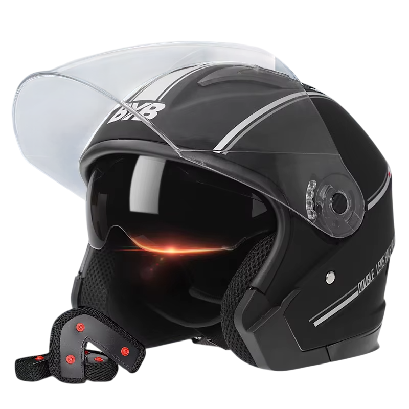 The flip-up motorcycle helmet offers the ideal balance between safety, comfort, and modern appearance. It is designed to meet the needs of various types of riders and conditions. The double visor allows for quick response to changes in lighting conditions, and the flip-up system provides freedom and flexibility for everyday use. Thanks to the adjustable ventilation, the helmet is suitable for longer rides without unnecessary overheating. The ABS material ensures reliable protection in the event of an impact, while the elegant design is visually appealing.