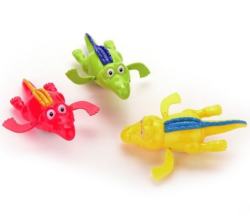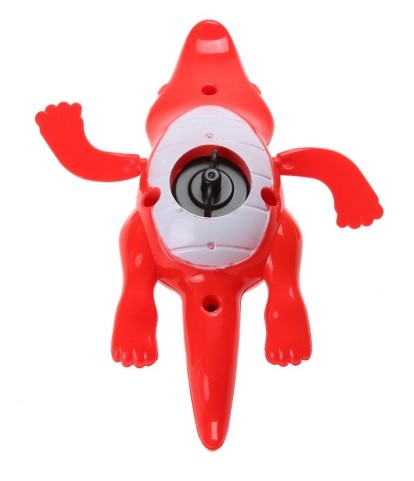 On the crocodile's belly, there is a rotating knob. Hold the crocodile's front legs and turn the knob several times.